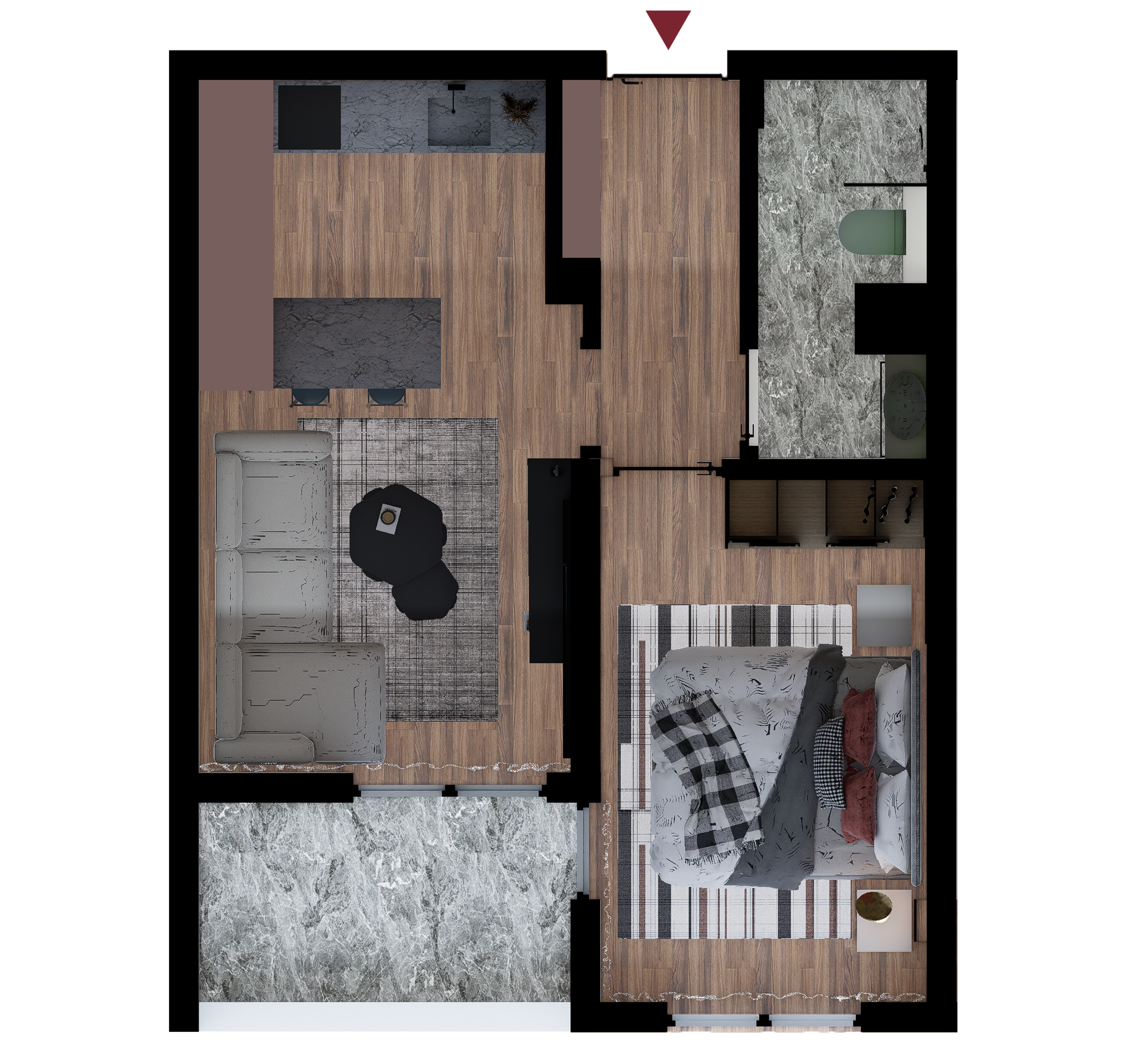 Idealno je rješenje za samce, parove ili kao manji obiteljski prostor, sa savremenim dizajnom koji pruža udobnost i praktičnost.